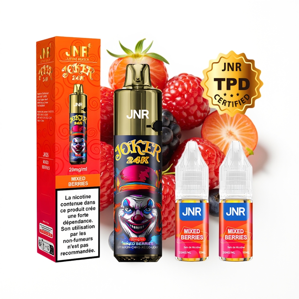 JNR Joker 24K Puffs Disposable Vape Baies Mixtes avec Pod Rechargeable 2+10ml et Batterie 800mAh