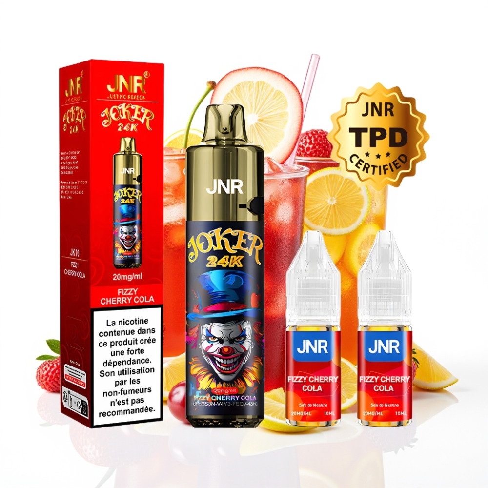 JNR Joker 24K Puffs Disposable Vape Cerise Cola Pétillante avec 2+10ml Rechargeable et 24000 Puffs