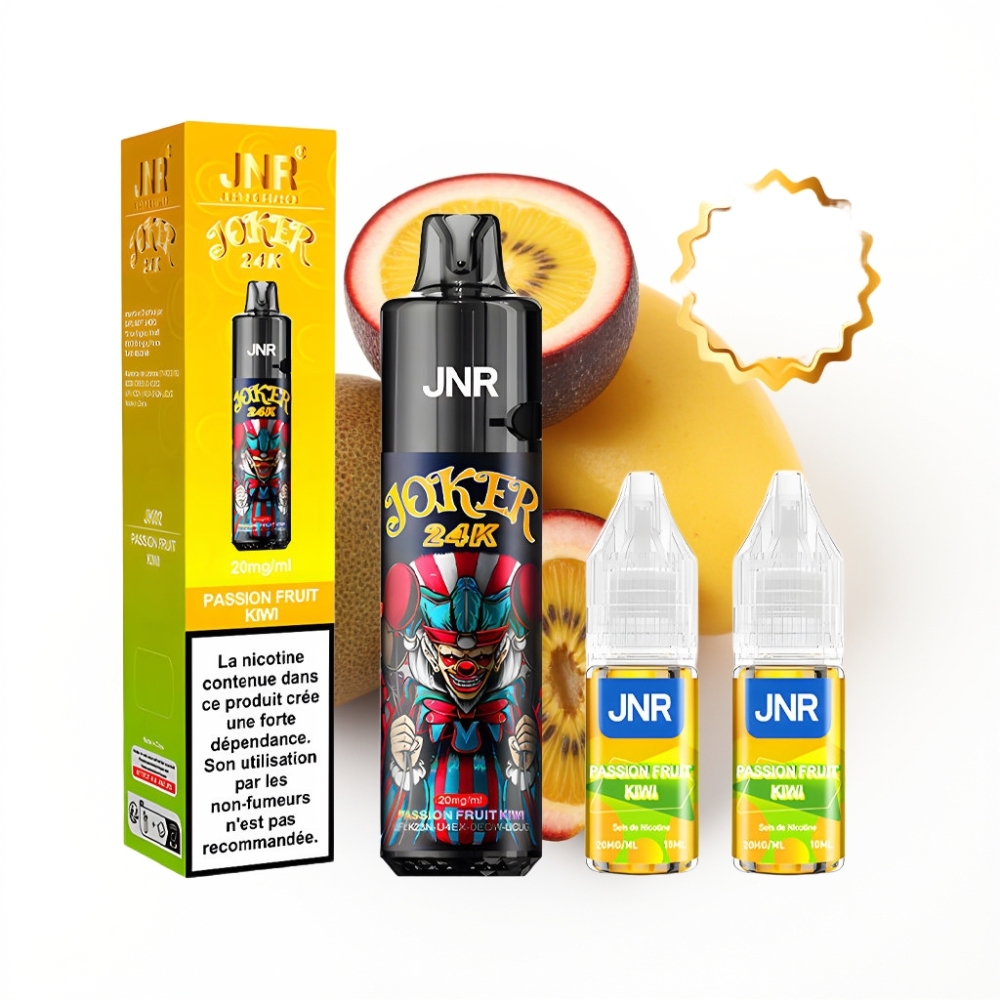 JNR Joker 24K Puffs Disposable Vape Fruit de la Passion Kiwi avec 2+10ml Pod Rechargeable et 24000 Puffs