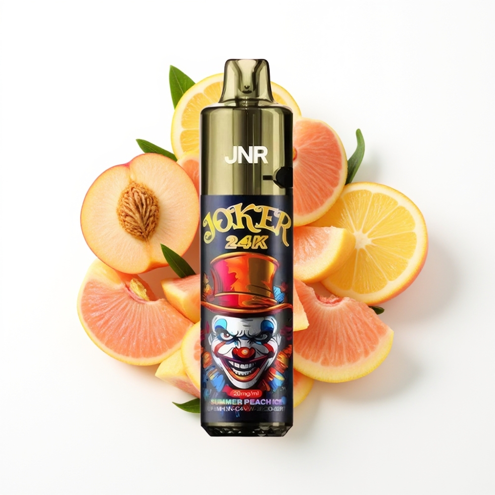 JNR Joker 24K Puffs Disposable Vape Pêche Estivale Glacée avec 2+10ml Pod et 800mAh Batterie