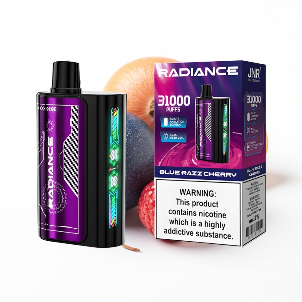 JNR Radiance 31000 Bouffées Vape Jetable MYRTILLE CERISE avec Ecran Animation et Double Bobine Mesh