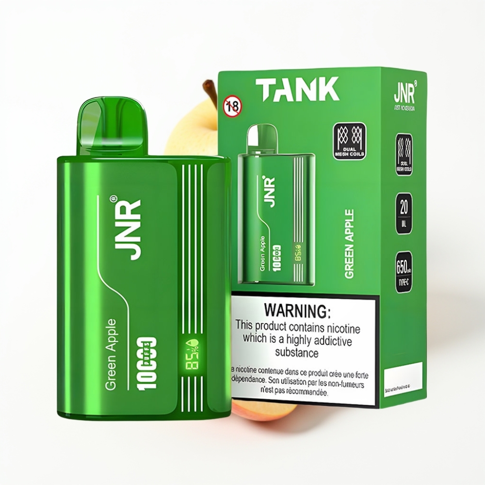 JNR Tank 10000 Puffs Disposable Vape Pomme Verte Pêche Poire avec Affichage Numérique et Recharge Rapide Type-C